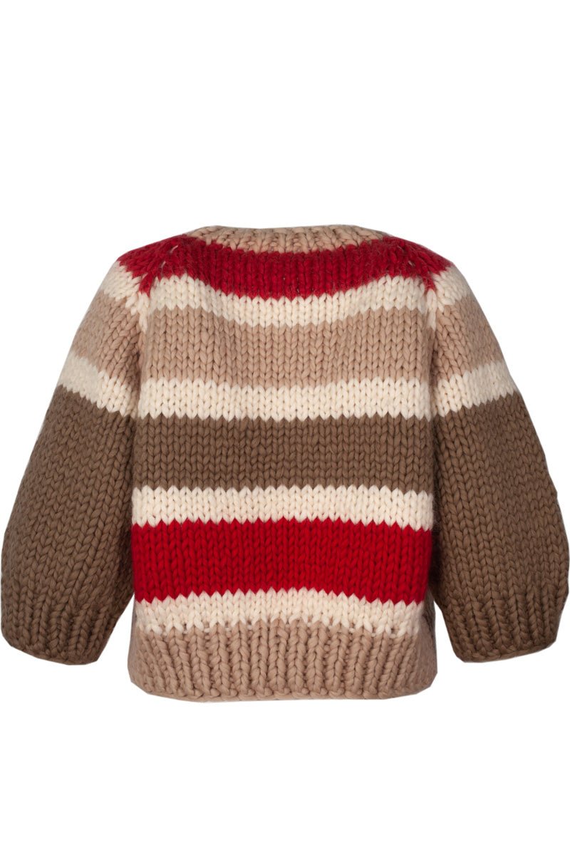 Morning. Happy, stripy, merino wool handknitted cardigan / jacket for which we tried very hard not to go completely crazy with the colors. Neutral, three quarter sleeves bring chill vibes to an otherwise enthusiastic mix of stripes. This piece is like your favourite cup of coffee, so pick your flavour.