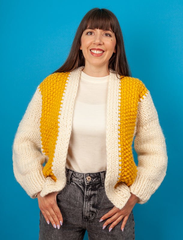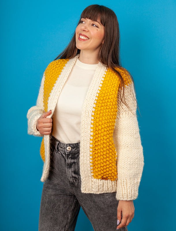GEMINI Merino Wool Cardigan - White Yellow